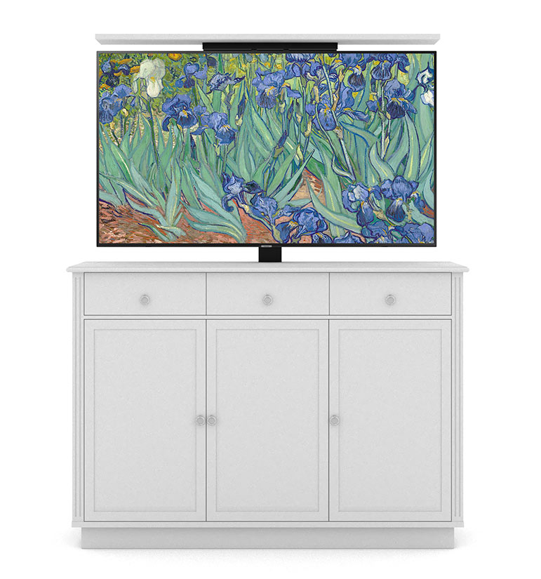 Stockholm 2.0 TV-lift 65 tum är en skänk med inbyggd motoriserade liftar för din tv. Med ett enkelt knapptryck kan du både lyfta och sänka din TV ur skåpet. Nu behöver inte en stor svart skärm ta upp yta och blickfång i ditt hem när den inte används.