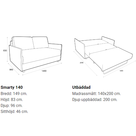 Smarty är uppbyggd av pocketresårer, som är individuellt fördelade sängfjädrar, var och en sydda i en egen tygpåse. Madrassen och sitsen ger ett gott stöd och har en tryckavlastning som följer kroppens form och vikt.