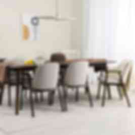 Åhus matbord har ett soft, enkelt, skandinaviskt uttryck, en tidlös estetik som låter sig levas med i vardag och fest! 220 cm långt.