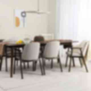 Åhus stol ger en finstämd lyx till bordet med rundat ryggstöd och flätad sits. Den halvcirkelformade överdelen ger ett gott stöd till ryggen och den flätade sitsen en hög sittbekvämlighet.
