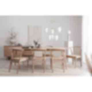 Åhus matbord har ett soft, enkelt, skandinaviskt uttryck, en tidlös estetik som låter sig levas med i vardag och fest! 220 cm långt.