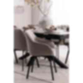 Niki karmstol med snurrfunktion, gör det enkelt att vända sig om mot sin granne, slå sig ner och gå upp ur stolen. En skönt stoppad stol som gör att man vill sitta länge vid matbordet.