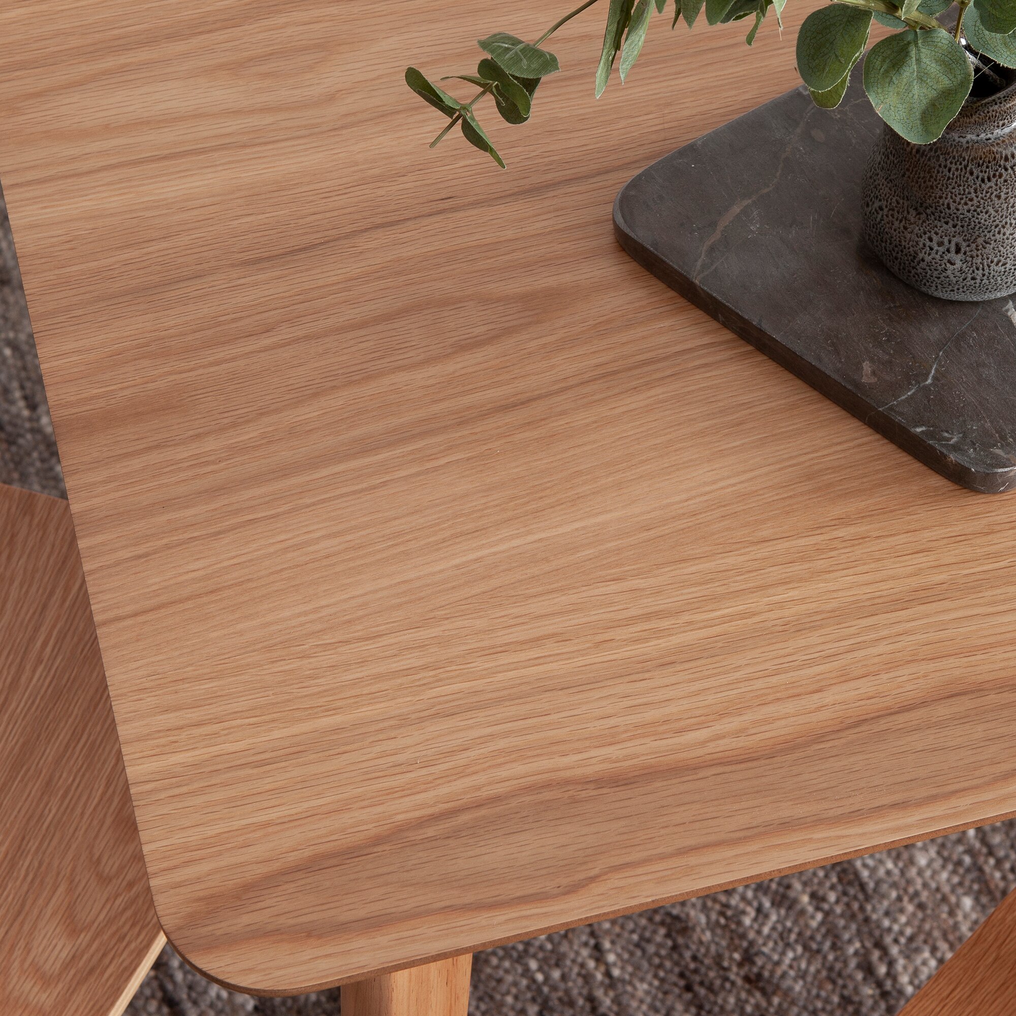 Ett matbord är mer än bara en möbel. Det är platsen där livet pågår. Därför är vi särskilt förtjusta i Yoko matbord. Bordet har en retroinspirerad design med snedställda ben som ger en luftig och elegant känsla. Den lackade bordsskivan i ekfanér ger en varm ton och en mjuk struktur som åldras vackert med tiden.